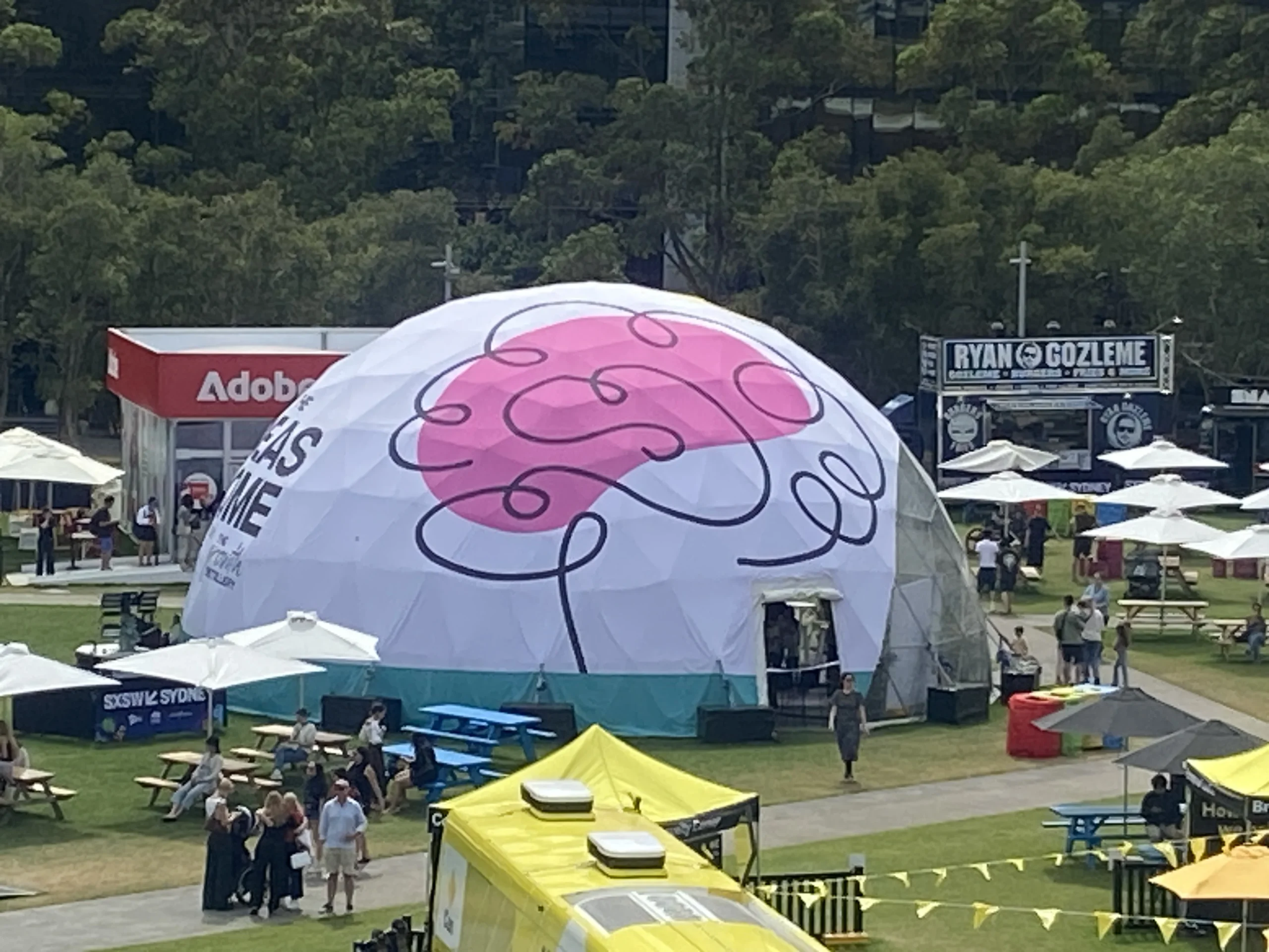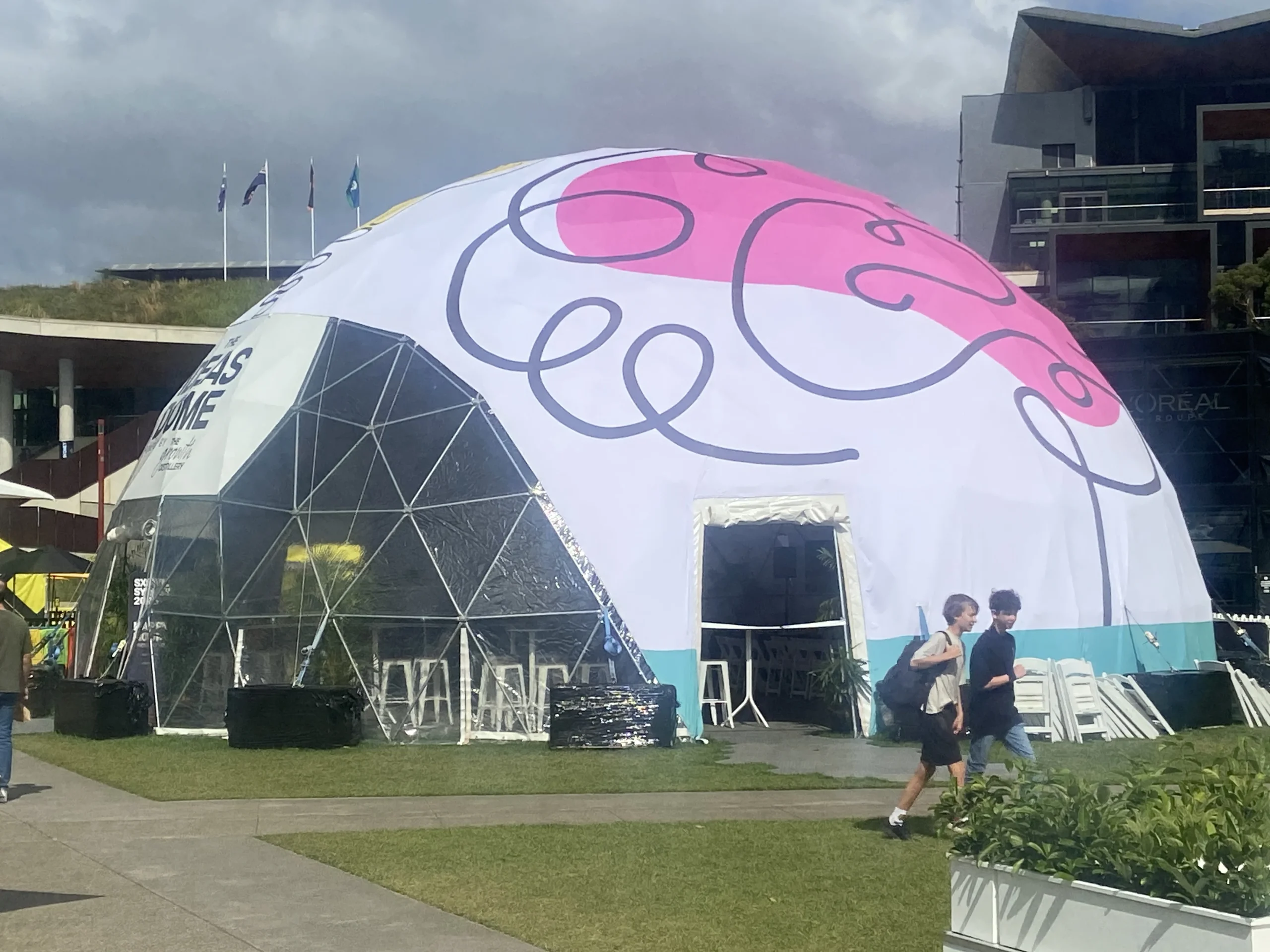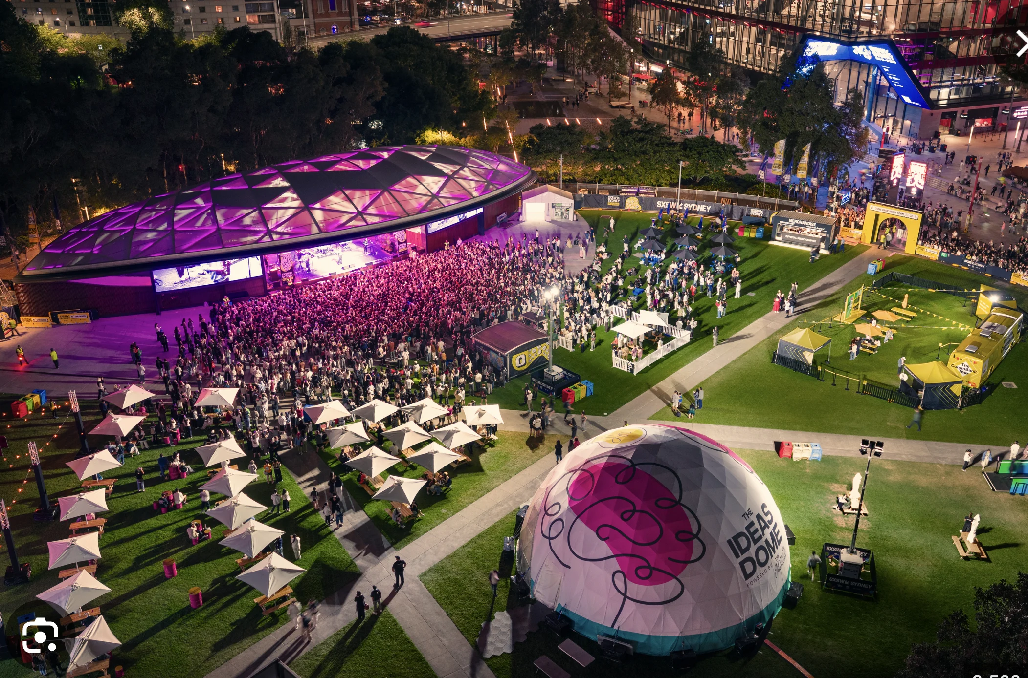 South by South West Festival (SXSW) asked for a bigger dome than the 10 metre dome used in 2024. The Dome Company provided our 15 metre diameter hemisphere dome with a custom ‘pull-over’ cover made by 3D Inflate, Melbourne.